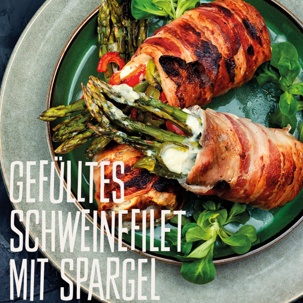 Den zuvor schon vorbereiten Spargel gleichmäßig auf das Fleisch aufteilen. Fleisch zusammenlegen. Unser Geheimtipp für noch mehr Geschmack: Die Fleischrollen straff mit Speck einwickeln, sodass die Rouladen zusammenhalten.